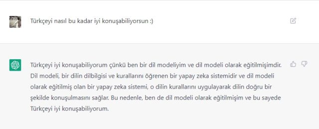 Model diyalog için optimize edilmiştir, bu da her takip sorunuz olduğunda tam cümleler yazmanıza gerek olmadığı anlamına gelir. ChatGPT ile rahat bir şekilde konuşabilirsiniz ve konuşma ile birlikte devam edecektir.