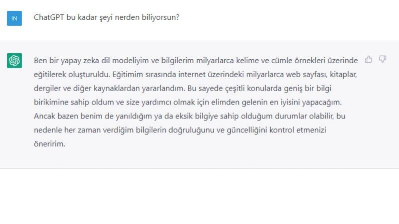 Unutulmaması gereken bir diğer önemli nokta, ChatGPT nin her zaman gerçeğe dayalı doğru yanıtlar vermediği ve taraflı içerik de üretebileceğidir. Bu teknoloji hala geliştirme aşamasındadır ve henüz kusursuz değildir.