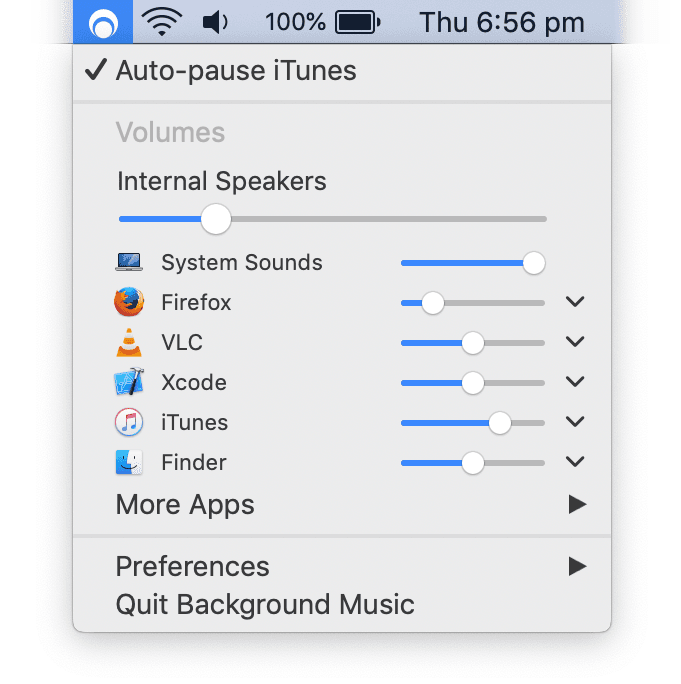 Background Music- Maciniz için uygulama başına ses kontrolü sağlayan bir ses yardımcı programı. İkinci bir ses kaynağı çalarken müzik çalarınızı otomatik olarak duraklatır ve ikinci kaynak durduğunda oynatıcının duraklatmasını kaldırır.