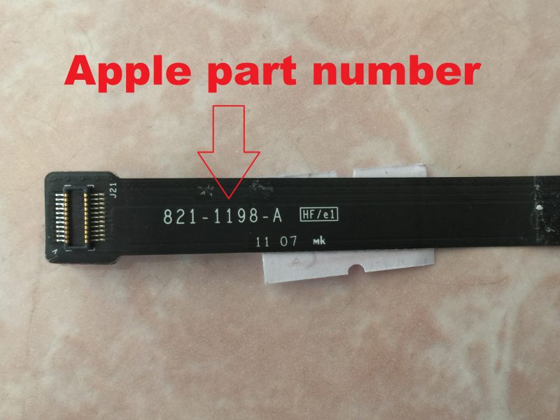 Tüm Apple yedek parçaları benzersiz parça numaralarıyla gelir. Aşağıdaki fotoğraf, 15" MacBook Pro 2011 HDD kablosunun parça numarasını göstermektedir. HDD kablonuzu kontrol edin ve yedek parçayı parça numarasına göre sipariş edin, böylece yanlış olanı almazsınız.