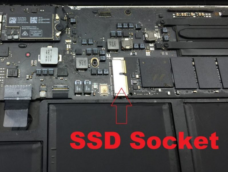 Tüm çıkarılabilir SSD sürücüleri, SSD yuvaları aracılığıyla Mac mantık kartına bağlanır. Soket paslanmışsa, “soru işaretli yanıp sönen bir klasör” alabilirsiniz.