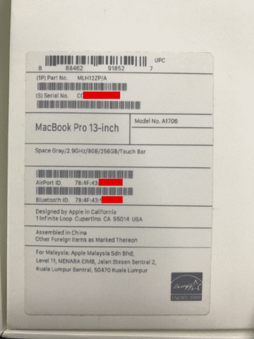 MacBook unuzu aldığınız perakende kutusunu bulun ve etiket üzerindeki model numarası bilgilerini görüntüleyin. Etiket genellikle dış kanatta görünür.