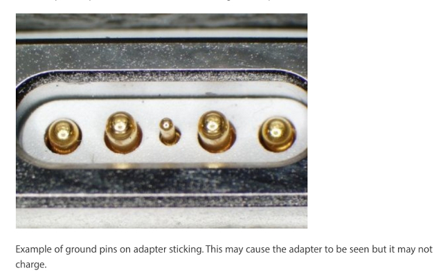 Bir MagSafe konektörü (veya gerçekten başka bir konektör) kullanıyorsanız, bağlantı portlarının etrafında toz ve kir birikebilir ve bağlantının etkinliğini azaltabilir. Adaptörünüzdeki ve bilgisayarınızdaki konektörlerin içine bir şey varmış gibi görünüp görünmediğini kontrol edin.